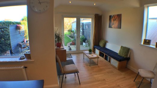 My husband and I will make you feel very welcome in our semi-detached home. We have an 8 year old Black Labrador dog, called Hollie,she is very friendly and lives in the house with us, but she is not allowed upstairs. We have a good sized garden too