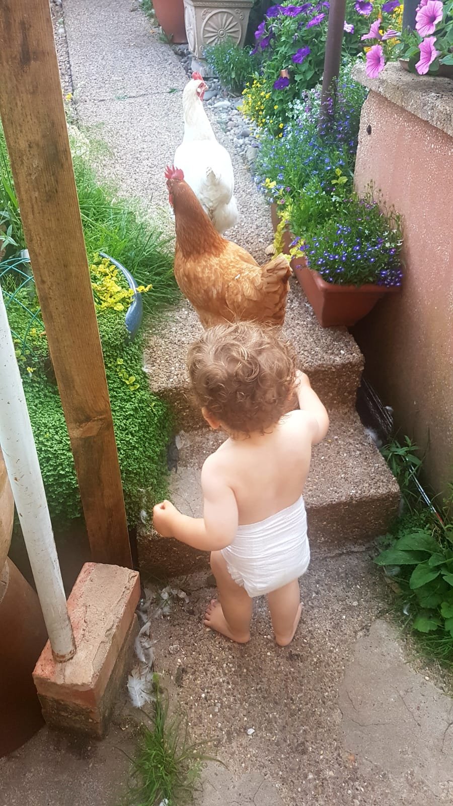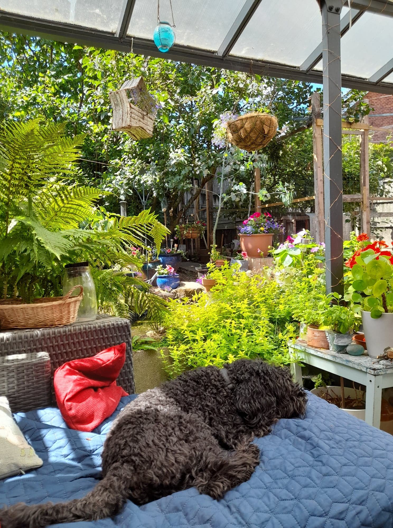 We have a young cat and two dogs; a friendly labradoodle and cockerpoo. We have a parrot and chickens in the garden.