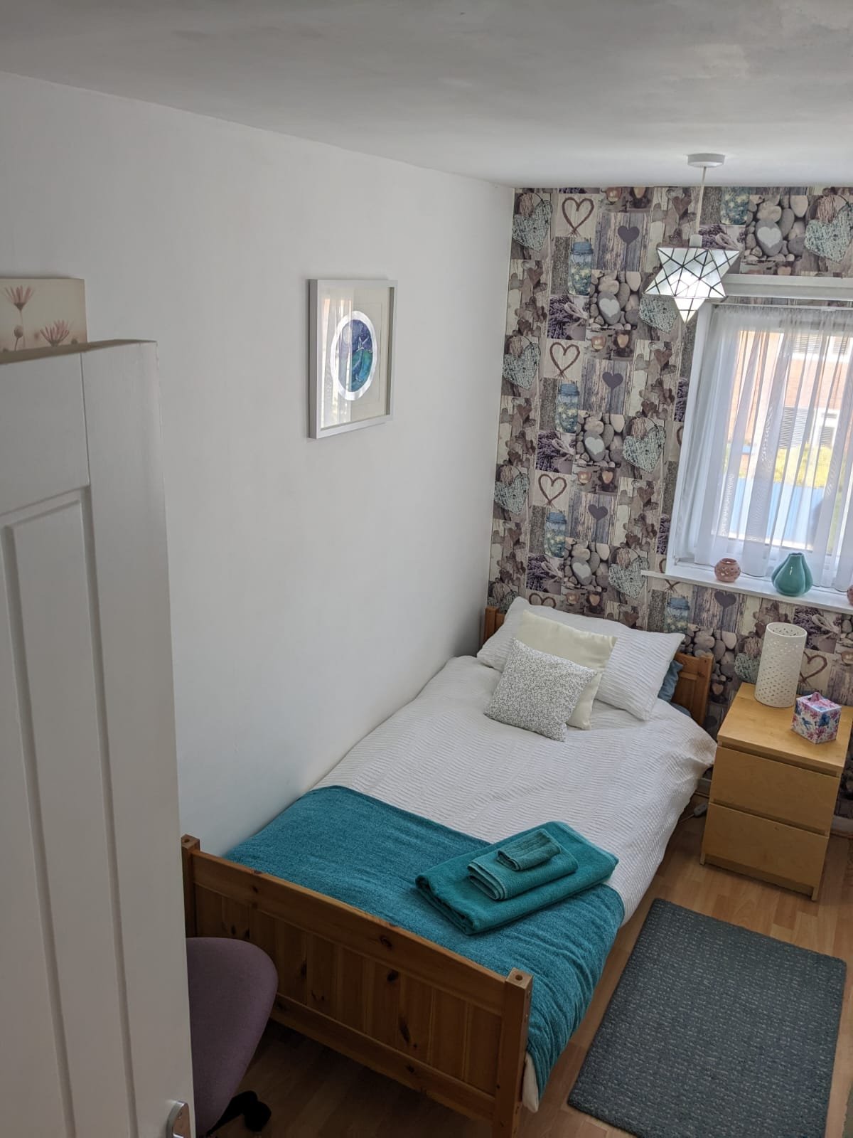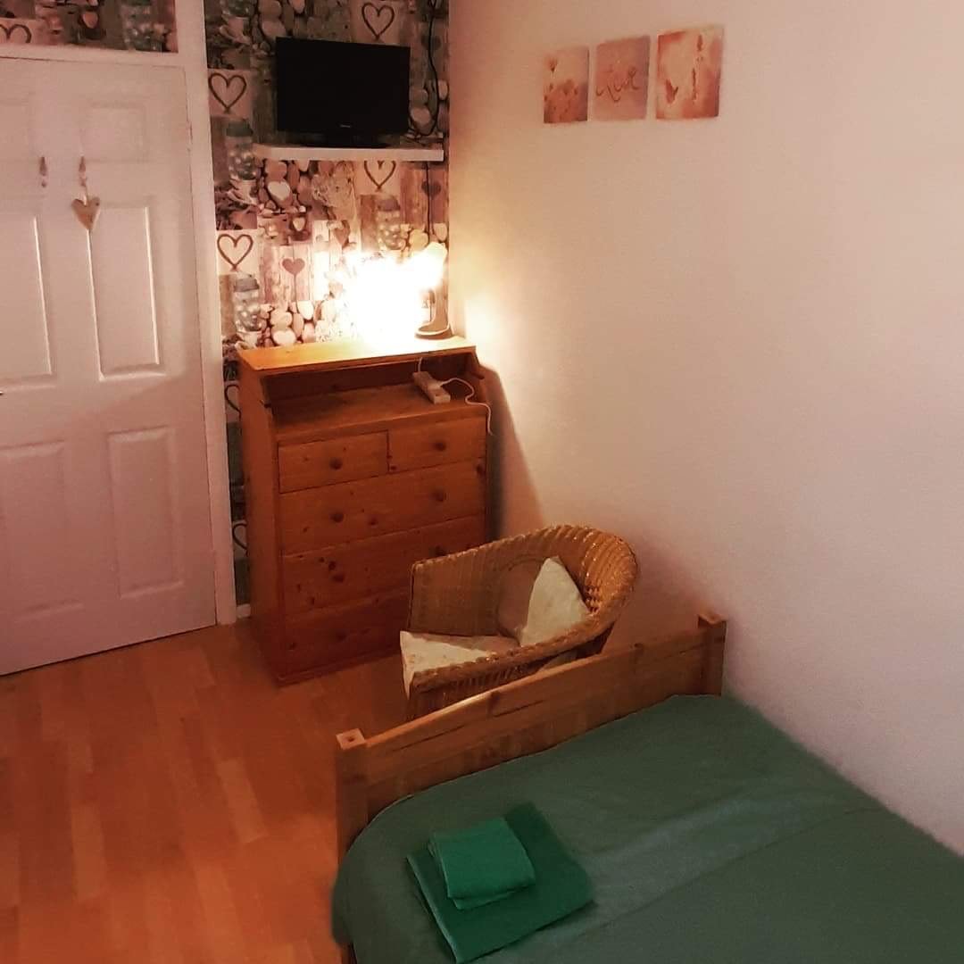 The rooms have fast Broadband, Wi-Fi, hairdryer, bedside cabinet, wardrobe, drawers, lamp, small table, chair. Towels and robes are provided. We have a small garden back and front. Guests have access to the family lounge/living room and kitchen facilities if required, and the gardens. Laundry can be washed and dried with the family laundry. You will be like a member of our family. We offer a trip out at the weekend and guests are welcome to join in all family activities.