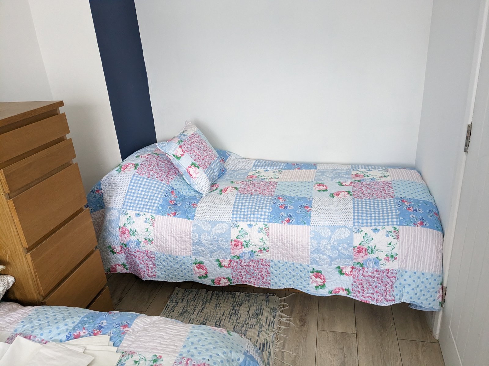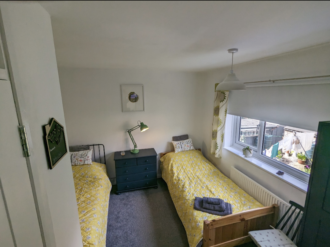 We live in a four bedroom property There is a shared bathroom with shower and toilet, plus a small shower room and toilet. The three guest rooms are a room with a single bed. a second guest room with a small double bed and a small single bed and the third bedroom has twin beds. We have a garden with herbs, fruit, vegetables and chickens.